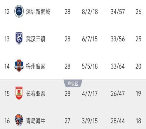 北京时间10月25日,中超联赛第28轮第二个比赛日2场比赛顺利进行。最新积分榜方面,倒数的3支球队呈等差数列排布,长春亚泰错失跳出降级区良机,天津津门虎先赛追平山东泰山,河南队无缘前十。